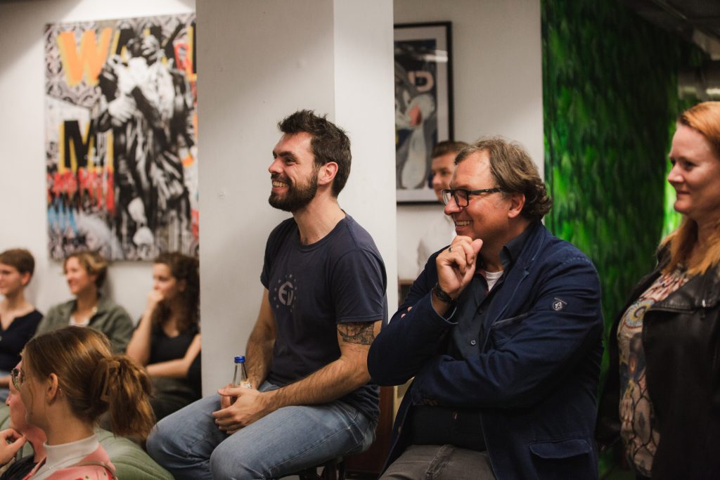 Zum Abschluss des Wettbewerbs fand nun am 18. Oktober in Kooperation mit dem Transferzentrum der PH ein #KnowYourMedia-Themenabend im Café Leitstelle im Dezernat 16 statt. In gemütlicher Atmosphäre, bei kühlen Getränken und leckerer Pizza moderierten Max Wetterauer vom Transferzentrum und Ulla Hoppe vom JOKER-Projekt durch den unterhaltsamen Abend.