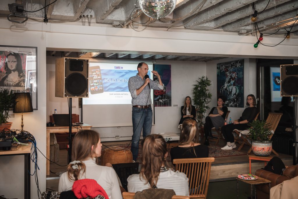 Zuletzt gaben Uwe Gradwohl und Nina Kunze von der Wissenschaftsredaktion SWR Wissen Aktuell Einblicke in den Arbeitsalltag von Wissenschaftsjournalismus und in den Wandel, der sich durch Social Media in der Redaktionsarbeit vollzogen hat. Anhand ihres TikTok-Kanals @solidscience demonstrierte Nina, wie u. a. Themen zu Klima, Raumfahrt, Biotechnologie oder Gesundheit in kurzen und unterhaltsamen Videos der jungen Zielgruppe näher gebracht werden.